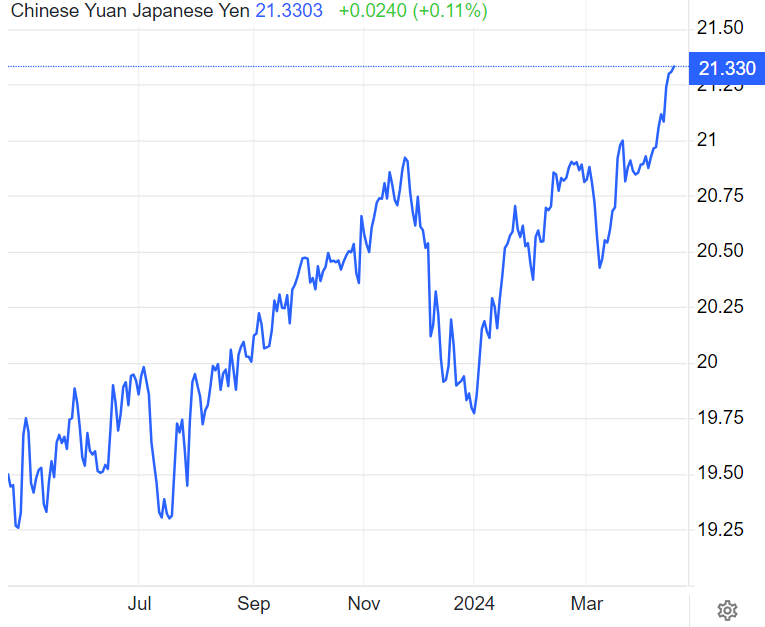 “If Japan has to defend or tries to defend the Yen, they obviously burn up the reserves in doing so, and might become a forced seller of US Treasury bonds, right, but the bigger repercussion that I'm looking at, and worried about honestly, for the world is that if if you look at the Yen to Yuan rate, it's making the Yuan uncompetitive, and China is is already saddled with a structural secular problems that might not even be solved with devaluation. The problem is that I see the Yen breaking out here potentially being a spark for a round of competitive devaluations.” - Kao