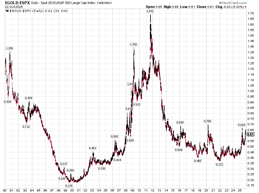 “Gold does not look cheap, but its seems cheaper than both treasuries and the S&P 500, which is exactly what I have been thinking for awhile now. On a shorter time frame, gold/SPX could correct a bit.”