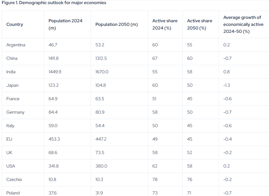 “…it does not appear that India, China or the newer EU member states face considerable challenges in achieving productivity growth sufficient to offset population declines…