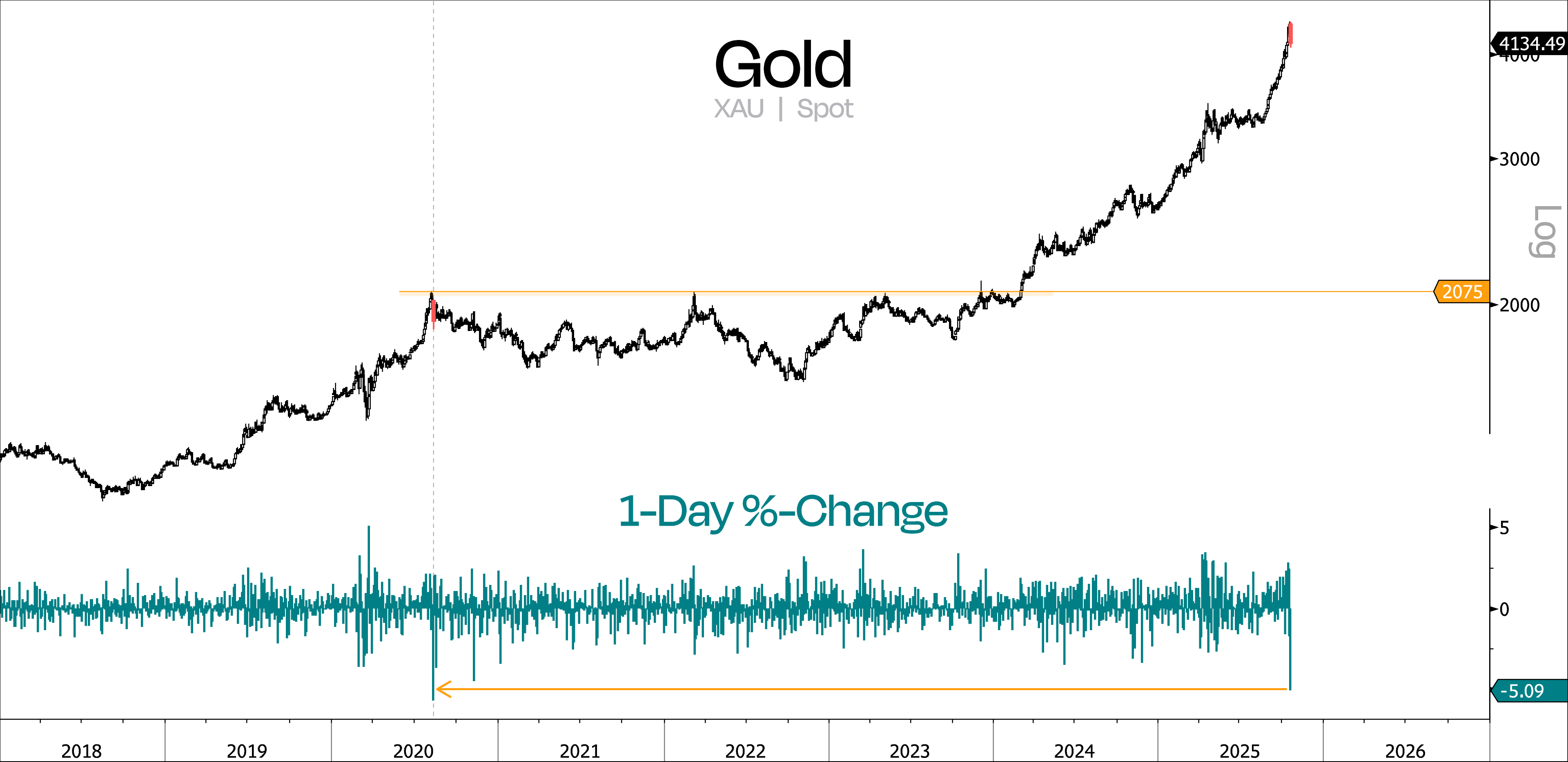 “The last time gold dropped this much in a single day, it spent the following 3.5 years moving sideways. After doubling in 1.5 years, it wouldn’t be surprising if this marks the beginning of a prolonged consolidation phase.”