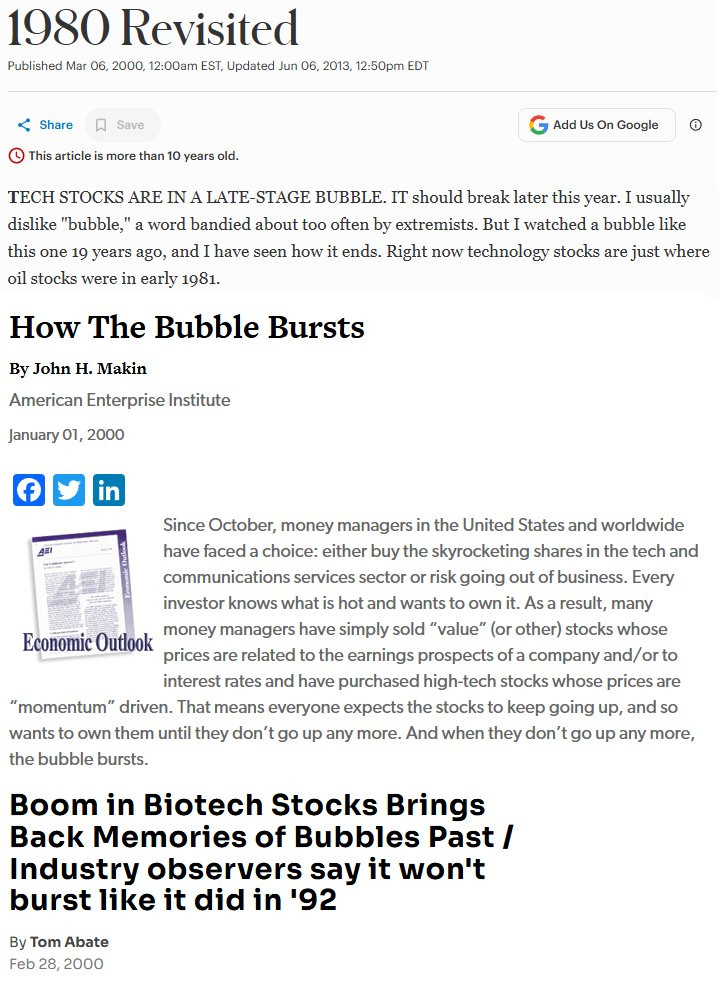 I think some people think that because people are saying we’re in a bubble, we can’t be in a bubble. As Mark Wahlberg would say, maybe. Maybe not. Maybe go...