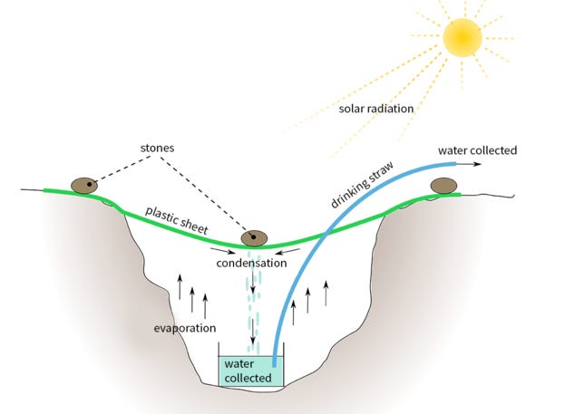 OK, so 50 years ago we were doing a low-tech version of this - in the desert - that I think produced more clean drinkable water than the MIT process described above. We called it a “solar still”: