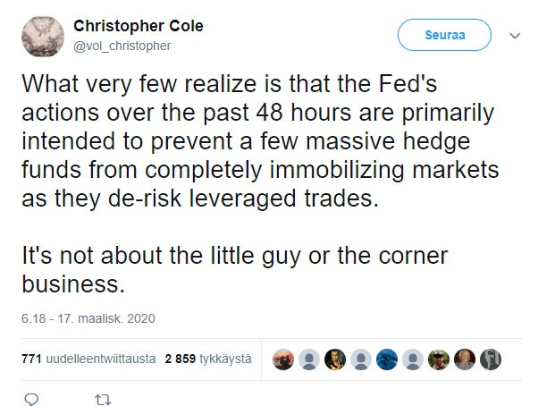 Second, investors have wagered on stability by investing in options, either directly or via funds, which hedge a counterparty from volatility. While they pay a premium, they risk large losses when there is more volatility. Likewise, so-called risk parity funds must maintain a set risk level, necessitating liquidating riskier assets when volatility increases.