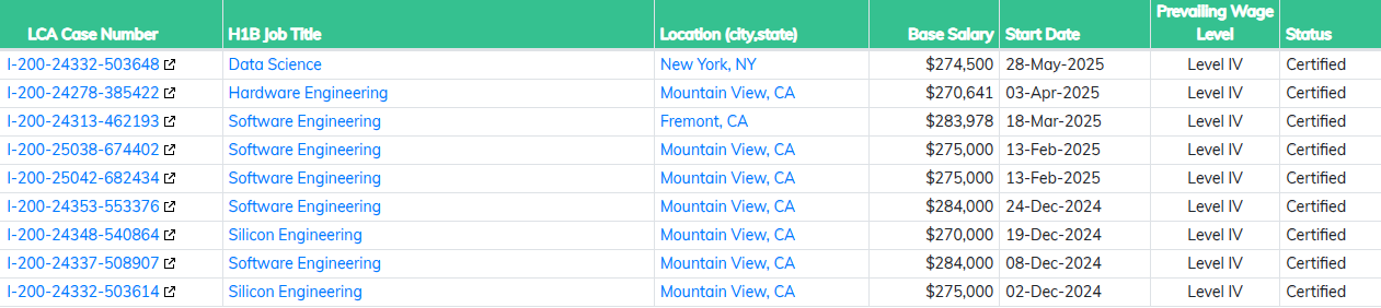 List of H1B Labor Condition Applications (LCA) for Microsoft Corporation - Fiscal Year* 2025