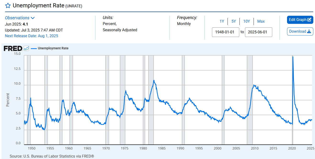 Looks like a historically low unemployment rate (4.1% officially), yet the U.S. budget deficit is projected to be $1.9 trillion for the full fiscal year 2025.