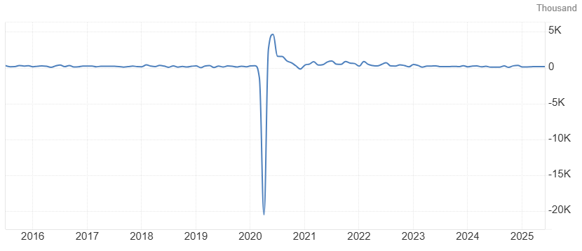 Quite a boring chart, most of the time: U.S. Non-farm Payrolls