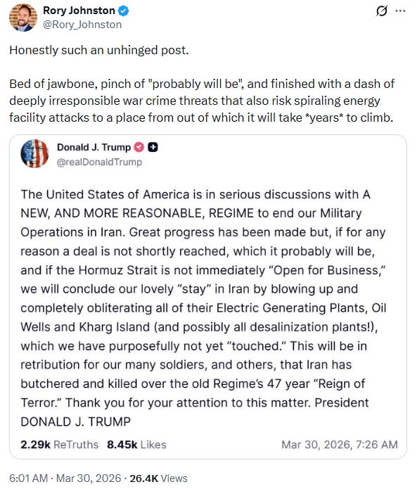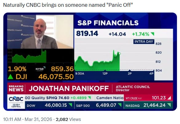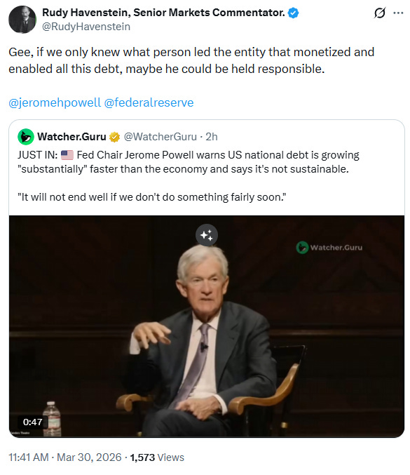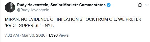 "We need demand destruction." - Jeff Currie, CNBC, 3/30/26