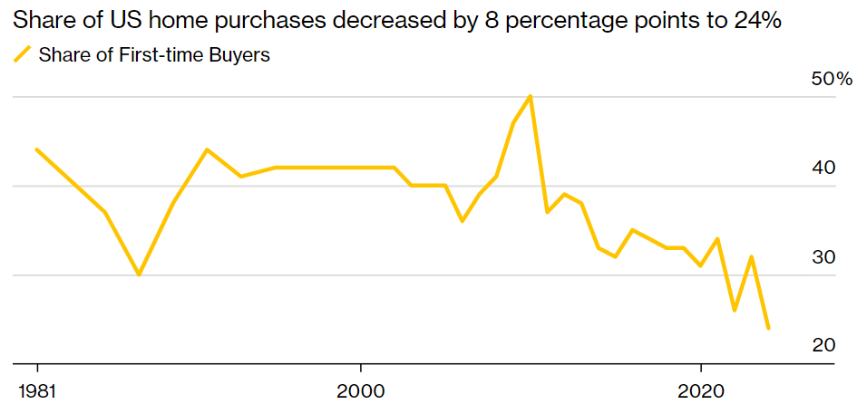 “The share of first-time home buyers shrunk to 24%, the lowest in data going back to 1981…In just two years, the median income of a first-time buyer has increased by $26,000 to $97,000.”