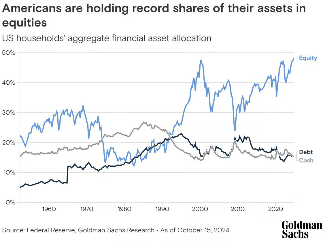 "US households held 48% of their financial assets in equities, as of October 15 — a record that equals the previous peak, set around the turn of the century."