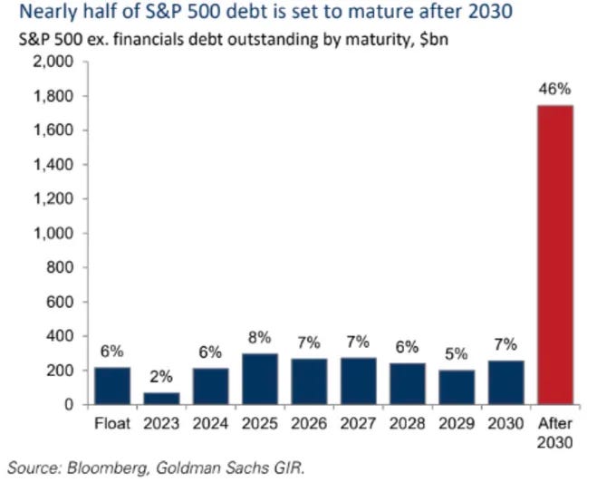At least S&P 500 CFO’s seemed to have handled their debt maturities fairly well. Those preternaturally low rates pre-2020 were a gift:
