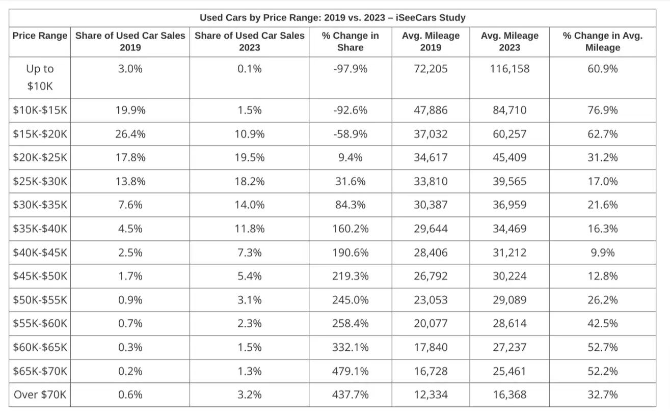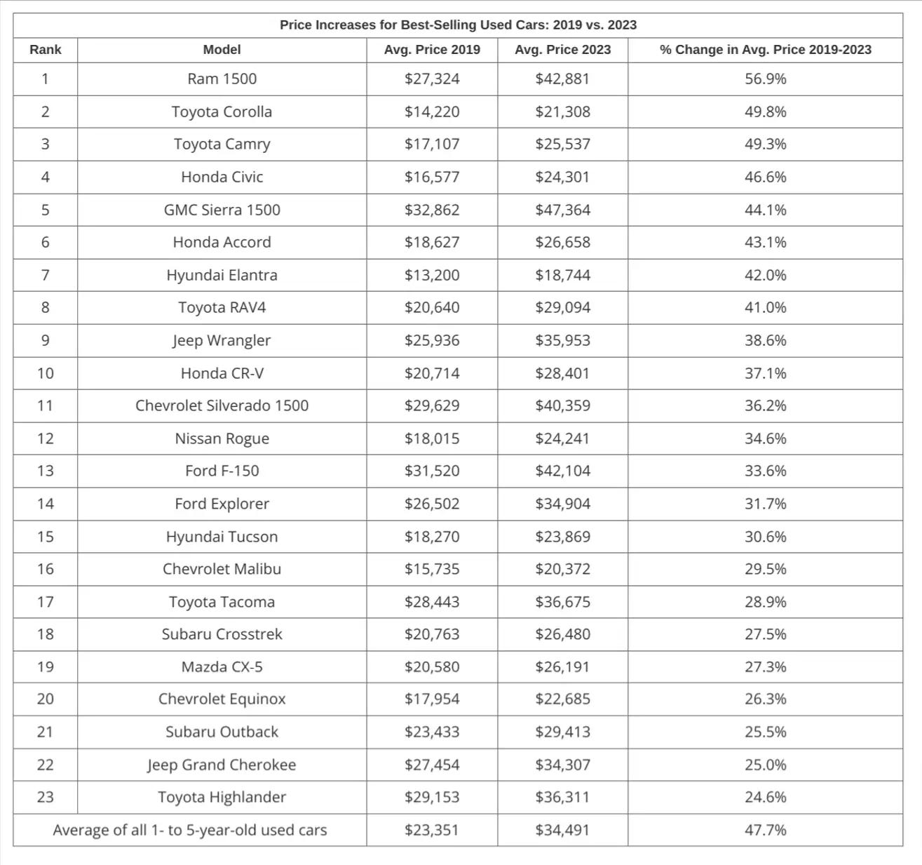 A look at some of the most popular used car models in 2019 and 2023 shows some huge price jumps for what used to be very affordable models: