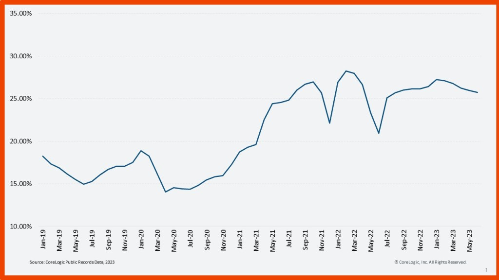 Between 2019 and June 2023, purchases of homes by buyers who intend to live in them fell by over 40%. But investor purchases over the same time period rose 12%. — Thomas Malone, economist at CoreLogic