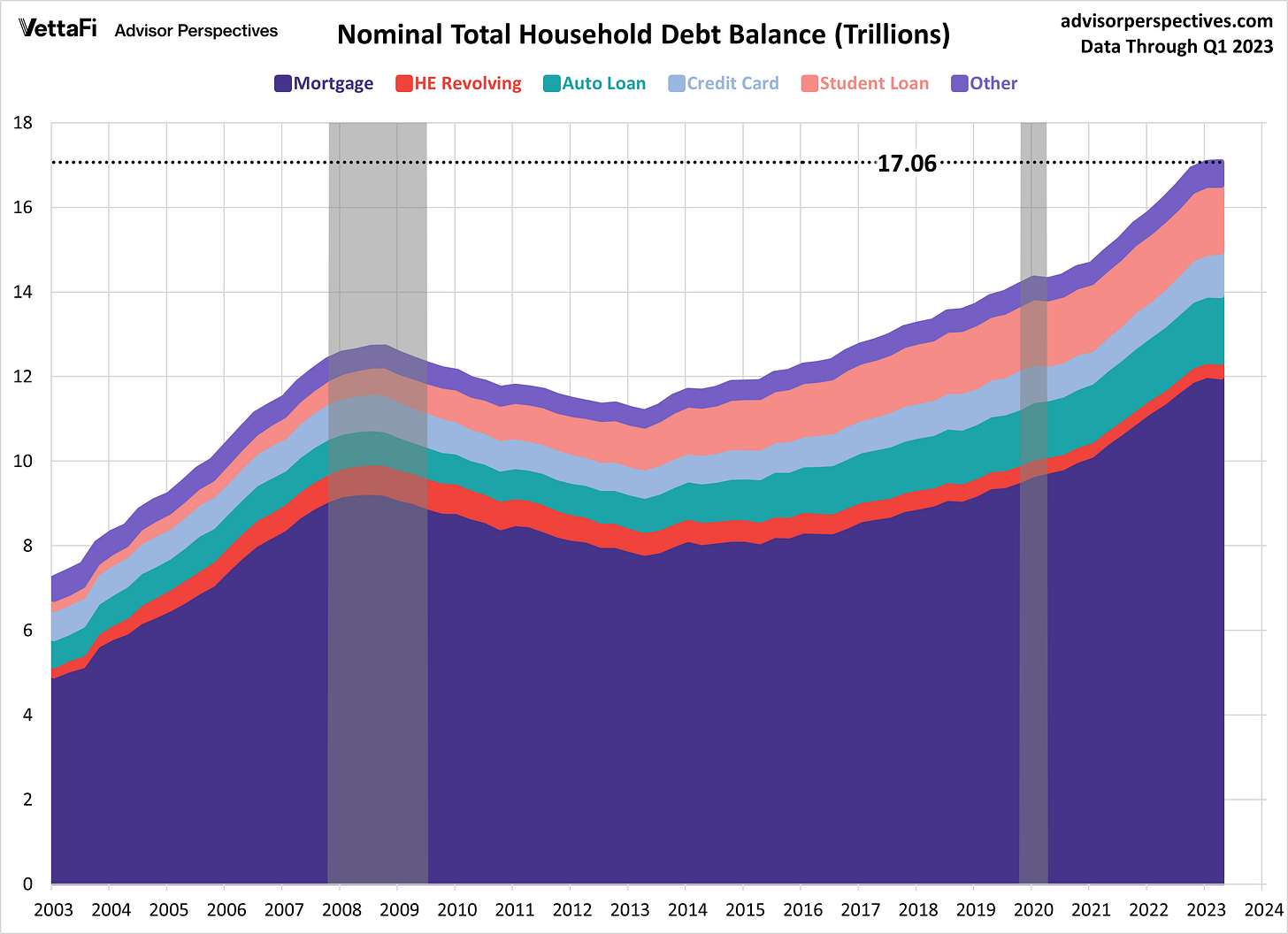 Financial commentators marvel how the Fed has been able to increase the fed funds rate from 0% to 5.3% without a major financial accident (other than the failure of a few regional banks). The previous time the fed funds rate was this high was in 2007, when there was $51 trillion in total debt instead of the current $94.7 trillion; and everyone remembers what that rate produced: the largest financial crisis in history.