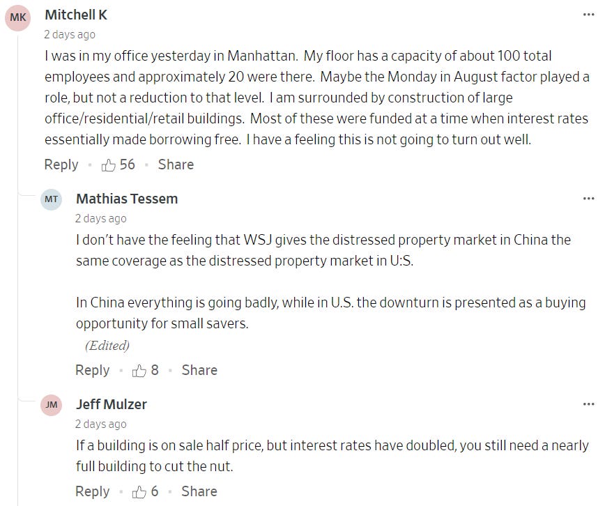 As with the Financial Times, often the WSJ comments are better than the articles: Wall Street Is Ready to Scoop Up Commercial Real Estate on the Cheap