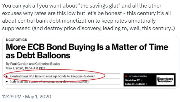 No wonder rates went down! Throw $22.5 trillion at an asset class (e.g., bonds) and see what happens. Come on, man!