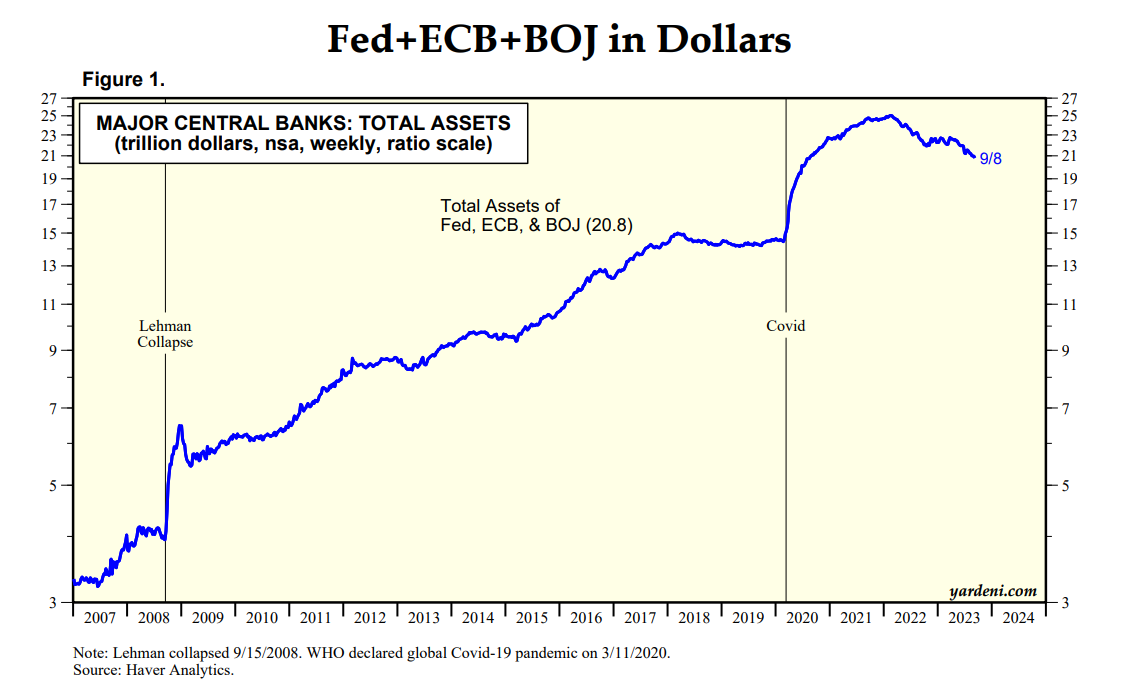 So below you can see just the QE from the Fed, ECB and BOJ (No China, UK, Canada etc.) We shot up from around $2.5 trillion in 2008 to around $25 trillion at the peak just a year ago. No wonder we had/have the biggest (financial) bubble in the history of the Universe.