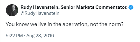 “What we always have to be worried about as hedge fund managers and so forth, is management that are unbelievably good at lying.” My first thought here was the "management" might as well be a euphemism for central bankers and politicians, too. They're all professionally great liars with the best rising the fastest it seems.