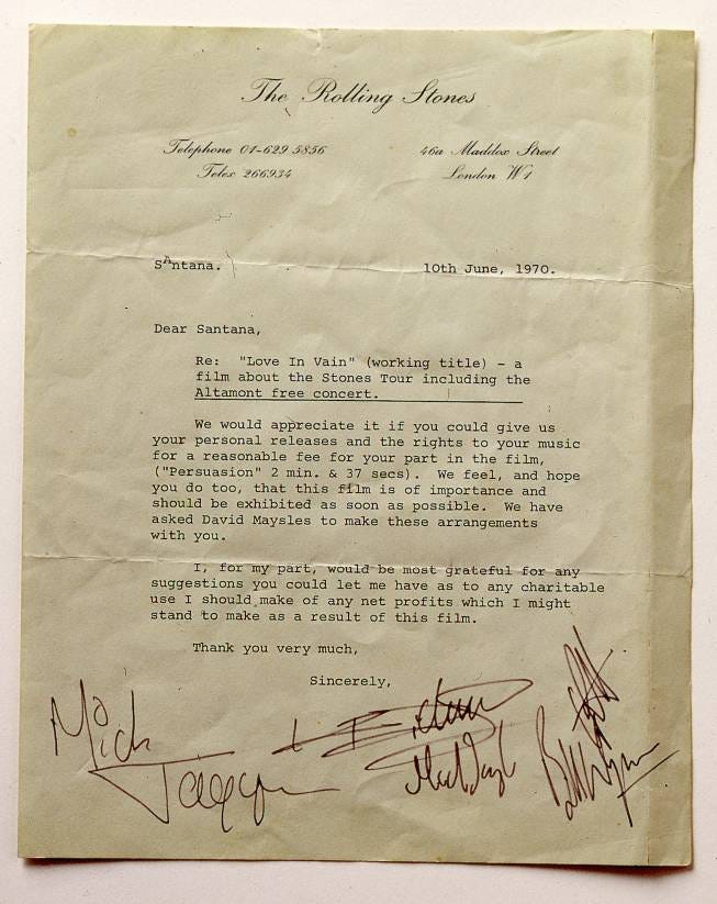 Santana, who opened the show at Altamont, said he was long gone by the time the headlining Rolling Stones went on.