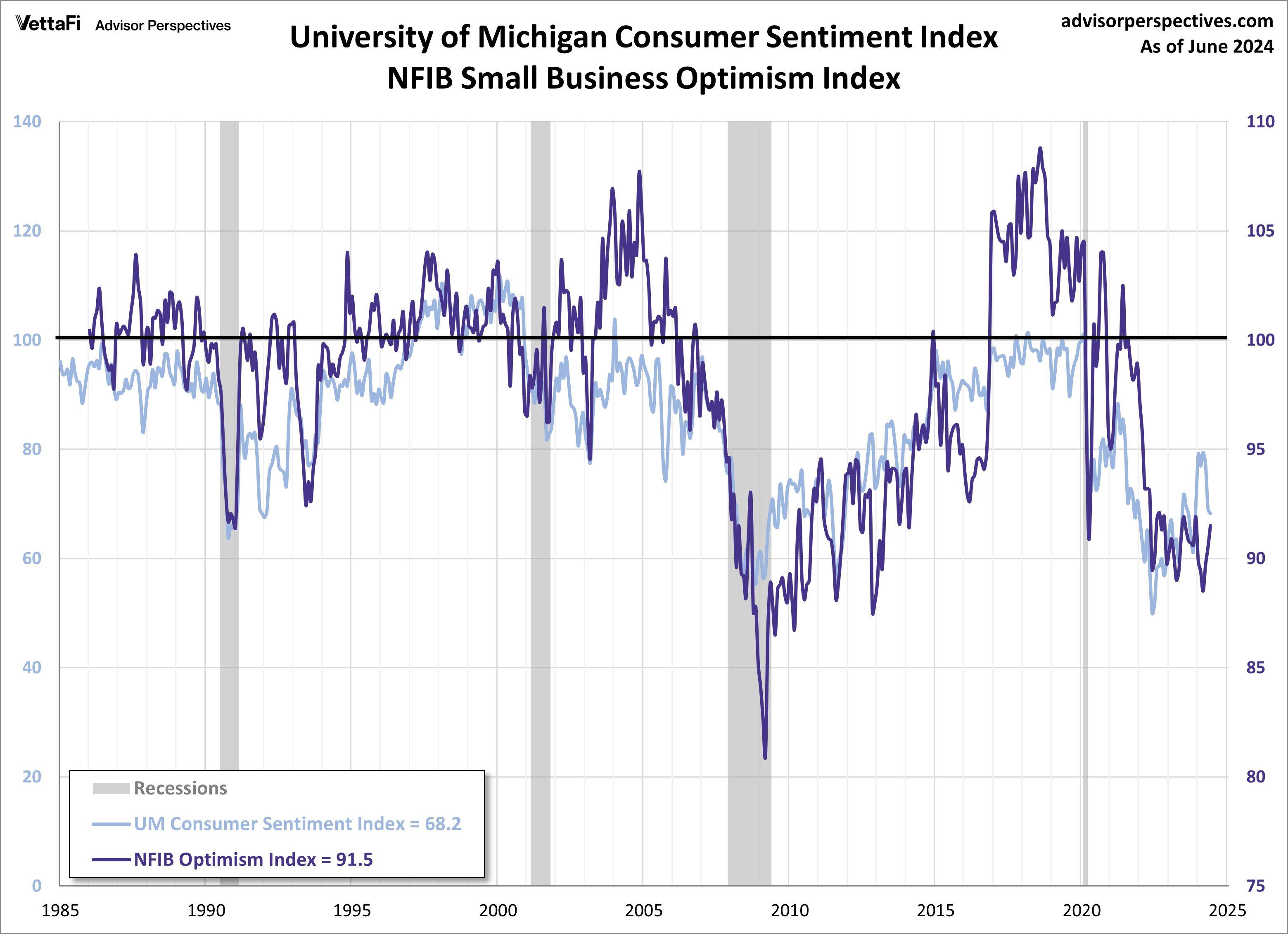 ”The prevailing mood of the Michigan Consumer Sentiment Survey is also similar to the mood of small business owners, as captured by the NFIB business optimism Index”