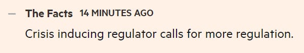Seems to me we already have plenty of rules and regulations - it’s just that bank regulators like the Federal Reserve do a terrible job. From the FT comments: