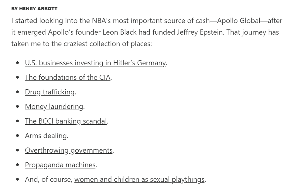 I will note that Apollo’s history includes ties to Jeffrey Epstein - not that anyone cares.
