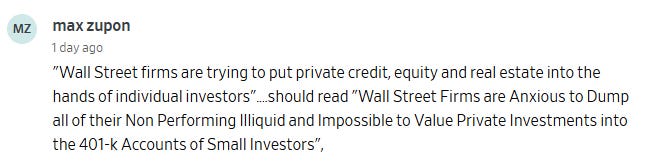 Check out the Apollo housing report (and more on Apollo), another great Melody Wright interview, Todd Sachs, reaching for yield, FHA subprime, CRE madness, private credit and private equity are coming for your money - privatize profits and socialize losses! Also Jamie Dimon, debt(!), and more.
