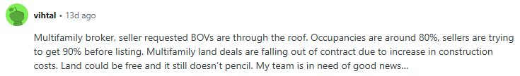 “In the past few weeks, I’ve been seeing a ton more off-market opportunities—especially 5–50 unit buildings where owners are “testing the waters” but don’t want to list publicly. Most of them seem tied to ballooning loan maturities or softening NOI. Some are clean value-add plays, others feel like quiet distress. Wondering if others are seeing the same across different markets? Are brokers bringing you more deals? Or are sellers still holding out? (I’m part of a lending team at Everest Capital CRE so we’ve been hearing a lot of this in our convos—but genuinely curious what folks are seeing on the acquisition side.)”