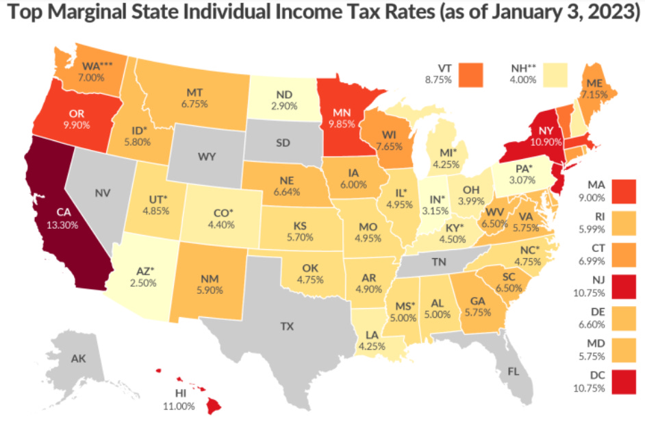Yesterday I learned that Tennessee has no income or capital gains tax.