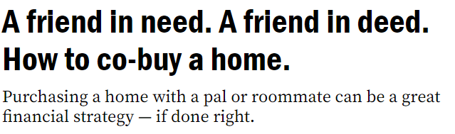“How about getting two houses with an friend and renting the 2nd house out for AirBB?”