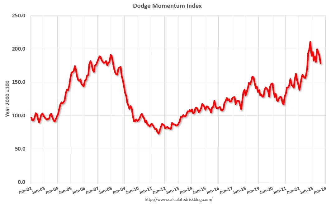 “According to Dodge, this momentum index leads "construction spending for nonresidential buildings by a full year". This index suggests some slowdown towards the end of 2023 and in 2024.”