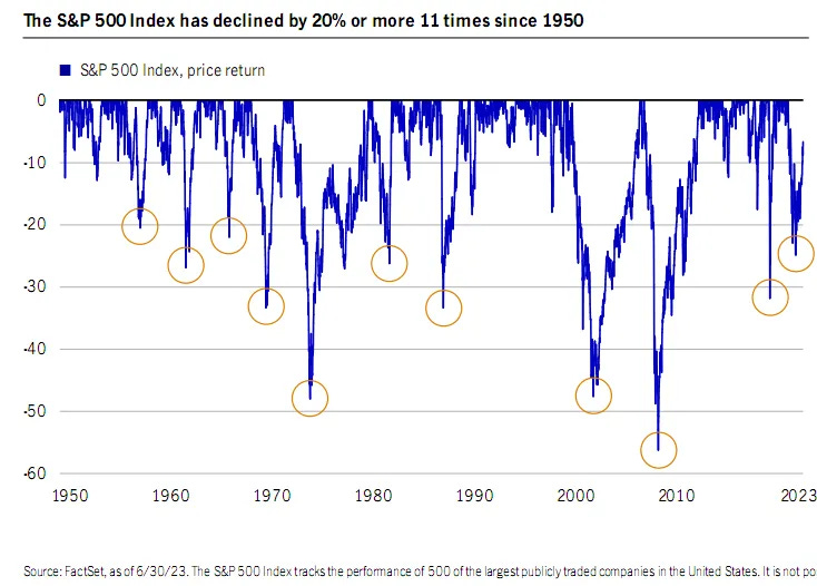 The S&P 500 index has declined by 20% or more 11 times since 1950
