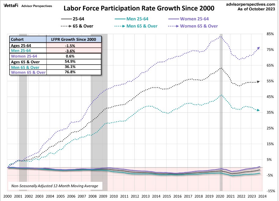 The only age group this century to have an increase in labor force participation is those over 65.