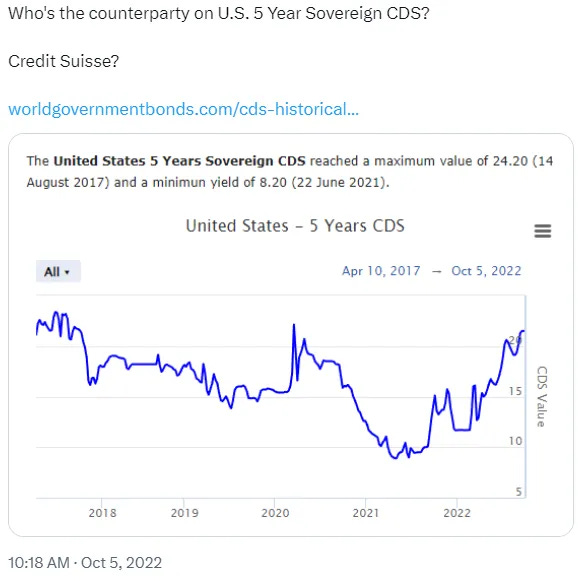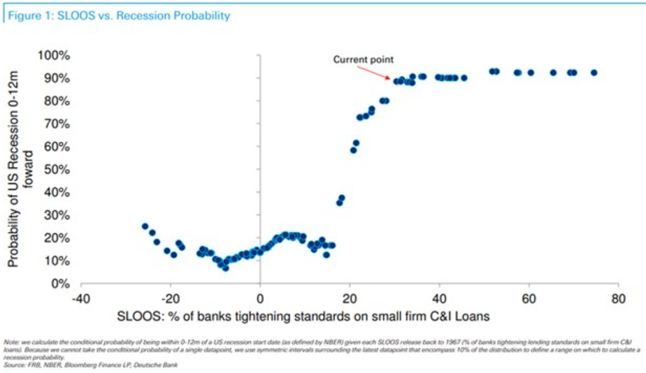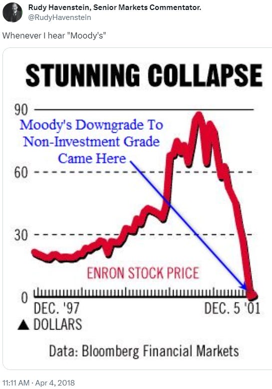 For what it’s worth, apparently when you go above 30% in the above chart, your chances of a recession hits 90%. Lots of mocking comments on the below chart.