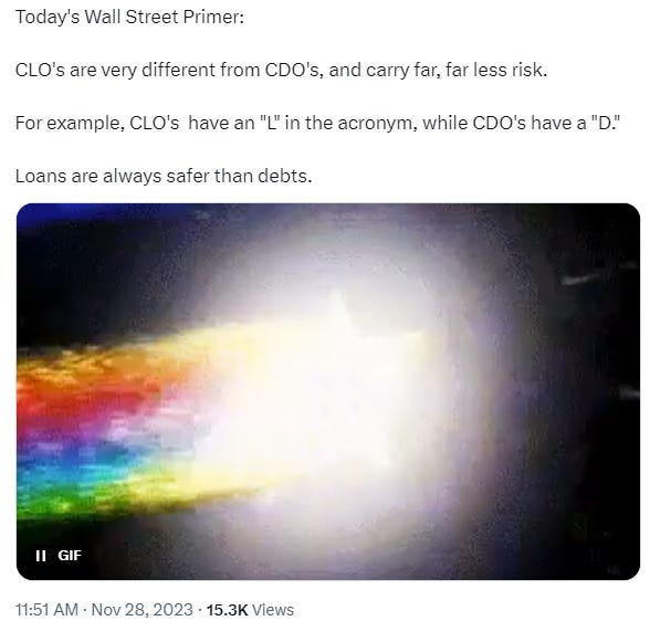 “I've got this crazy idea that I want to buy only the lowest coupon treasuries, zeros if possible, because if I have a very low coupon treasury, I don't have to worry about being restructured. I worry that the federal government might be forced to restructure the Treasury debt. People say that's impossible, that a contract, it's illegal, and I say, well, don't you remember the mortgages back in 2007, 2008, 2009? It was illegal to modify those mortgages. It was in the prospectus of trillions of dollars of mortgage-backed securities that these mortgages cannot be modified, but they did it. The Federal Reserve Act of 1913 says it is illegal for the Federal Reserve to buy corporate bonds. In 2020, they started doing it. They didn’t have to do very much, because just by doing it, the market repriced aggressively, because they said, well, the Fed's got an unlimited balance sheet, or perceived to be a huge buying power, so they can right this market, and so so that happened. It's illegal, it's un-Constitutional to cancel student debt, but $7.7 billion of student debt was canceled yesterday in one day alone, so the fact that something is viewed to be a contract doesn't mean it won't happen, because it's been happening with regularity over the last several years. I'm not predicting this, but what if the Treasury says, hey, we got all these bonds out there, and some of them are quite old, and some were paying 4%, 5%, 6% - we're in a jam, so what we're going to do is every Treasury bond that has a coupon above one, we're resetting the coupon of one.”