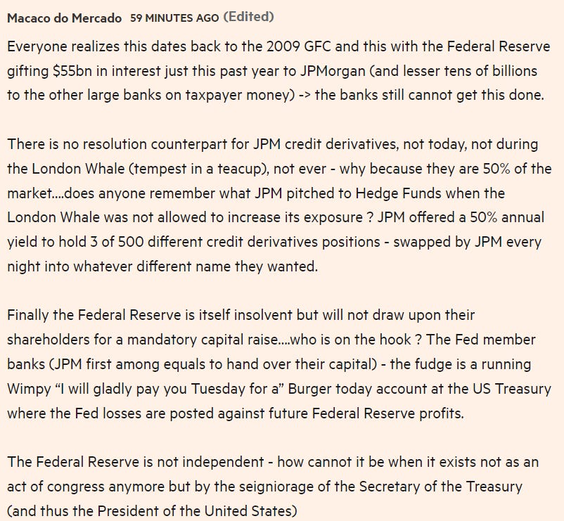 “We're in the endgame here for this debt-finance scheme, and I believe that the way to fix all of this will make it so that we're in a better world going forward, maybe in the 2030’s, because we're not going to be able to borrow anymore. We're going to have to run a sound economy. That's so outside of the psyche of consumers today. Consumers today are borrowing money like crazy at 23% interest rates.”