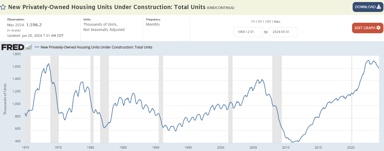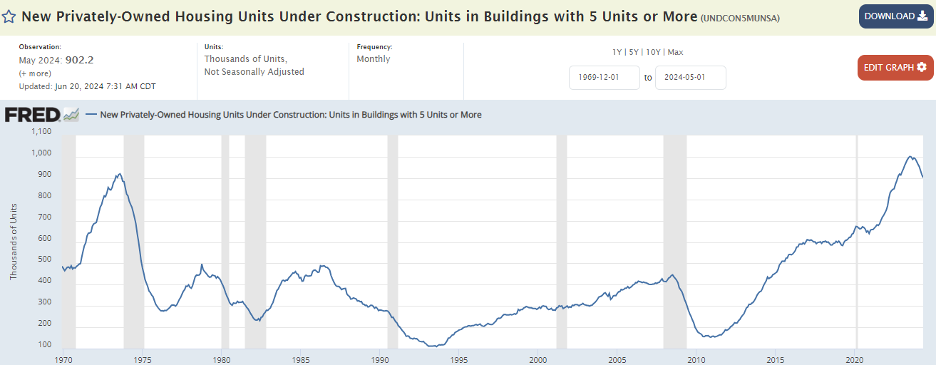 The consensus lately is that in a few years - due to a drop off in multifamily construction now - rents will rise again, but if you look at this FRED chart, we’ve had an epic amount of apartment construction going on.