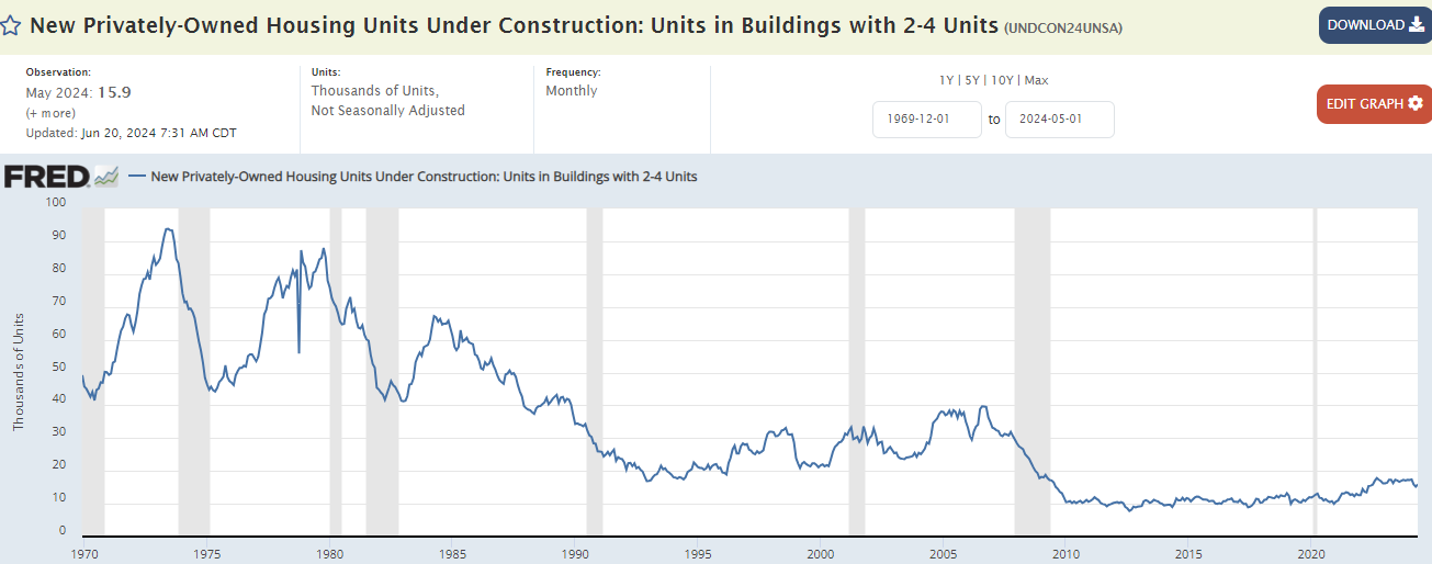 Also, nobody seems to be building duplexes or triplexes any more, although there’s been a flurry of “ADU” type discussions…