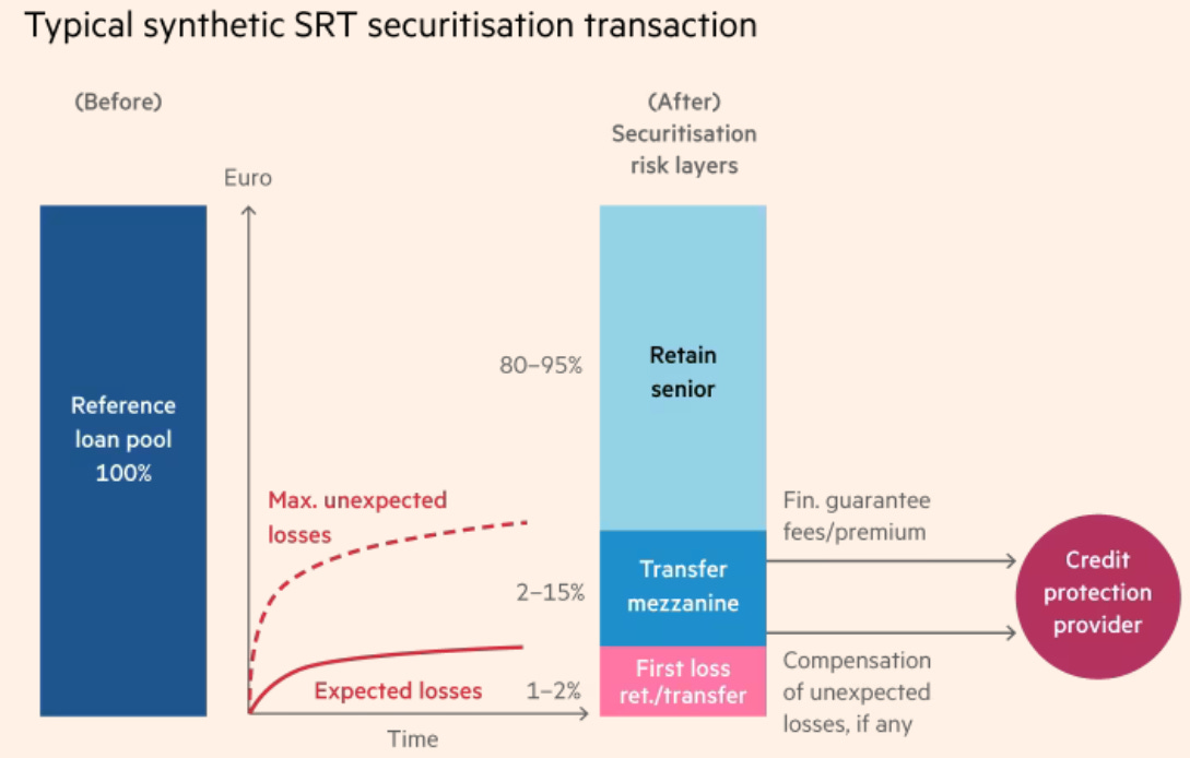 “A complex area of risks, hard to cover in full in an article like this. The SRT diagram is what one needs to look at, and recall the mindset of Steve Eisman in The Big Short: are the underlying loans/risks sufficiently independent/unconnected/uncorrelated? Maybe - if so, the “reinsurance tower” structure is valid. However, if they are not a diversified collection of risks like a large North American insurer’s property book, then this structure has potential contagious catastrophe risk. Like the US prime lending ABS exposures. What are the components of the underlying pools and how interconnected are they?”
