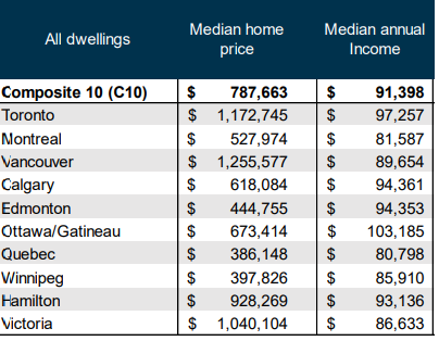 Here’s some dated (2022) data on Median Sales Price/Median Household Income: