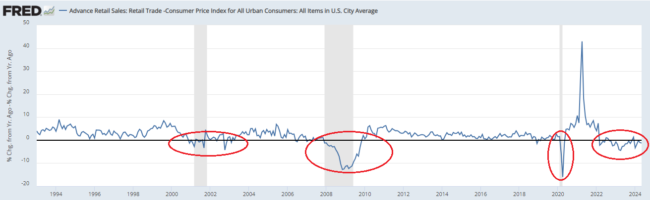 “The only other times we've seen real retail sales in negative territory was in the tech bubble crash, the global financial crisis, and the pandemic. That's it. And now.”