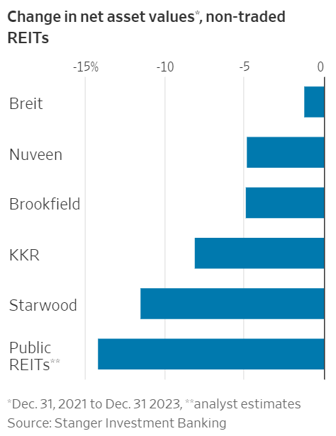 Investors pulled more than $13 billion out of Blackstone Real Estate Income Trust, or Breit, last year, a nontraded fund with a diversified property portfolio, including fast-growing types such as data centers and e-commerce warehouses as well as apartments in the Sunbelt, where rents are slowing. The redemptions were equivalent to almost 20% of the fund’s net asset value at the start of 2023.