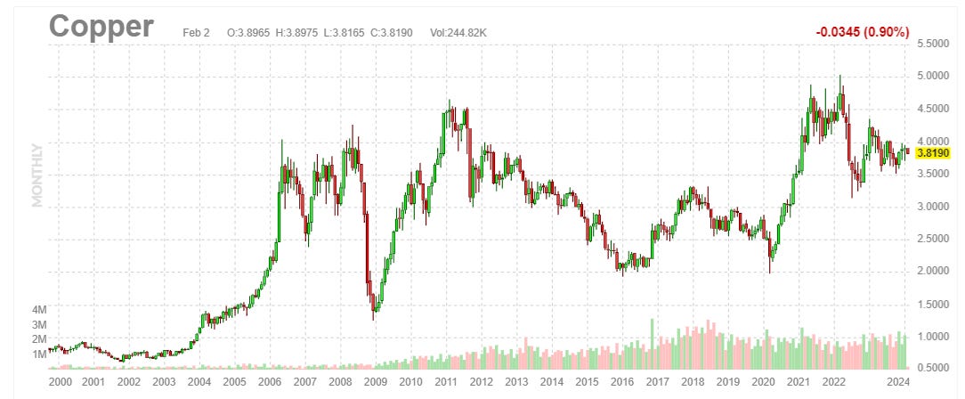 “Today, we're sitting here, and we're saying, okay, China is blowing up, and core inflation is easing, and copper - who cares about copper? And then people always forget how long it takes. So imagine if we fast forward in two years time, and we're actually accelerating again, and we actually do try to build all those green energy projects, and, you know, rebuild the US grid, and we're like, oh crap, where's the copper?” - Shrub