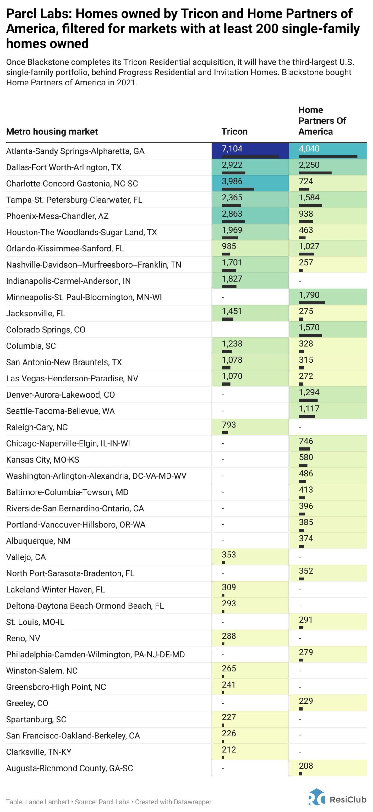 Charlotte: 4,710 homes (3,986 Tricon; 724 Home Partners of America)