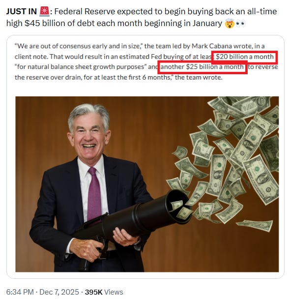 Okay. So they didn’t know, they couldn’t know, but they thought they knew. Realizing that there were not enough dollar bills floating about the system, the Fed undertook to inject about $60 billion a month, if memory serves - which it so infrequently does - but 60 billion or so a month beginning in September. And, well, let me add that it looked like QE, didn’t it? All this $60 billion. And the Fed and in an intimate conversation among the members of the Federal Open Market Committee said, “God, it does kind of seem like more QE. That’s not good. But how do we sell this?”