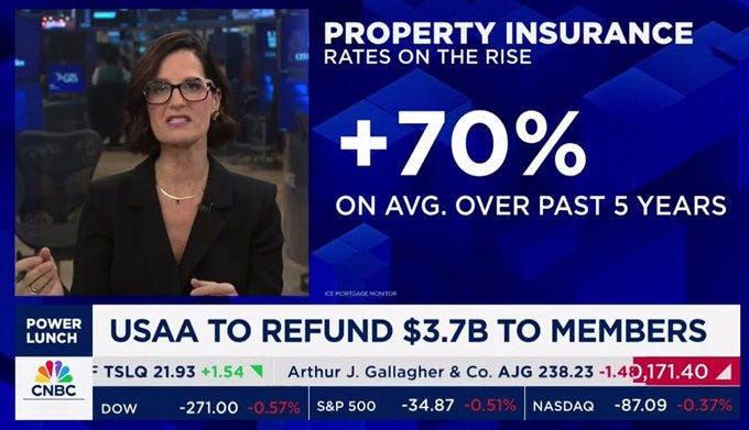 Average homeowners insurance costs have risen nearly 70% over the past five years, according to ICE Mortgage Technology.”