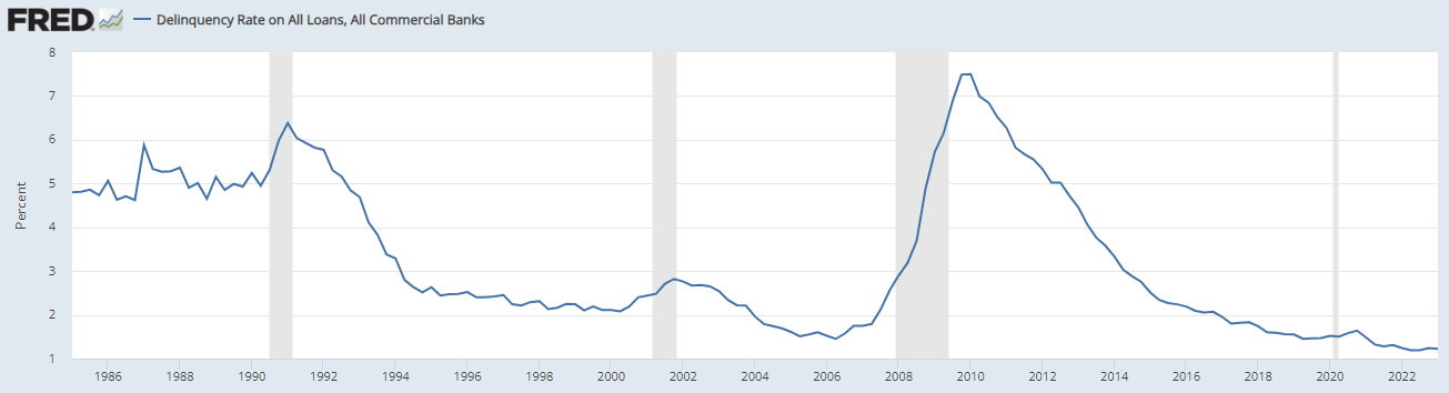 Bank Stocks Slide After Moody’s Downgrade “The ratings firm also pointed to the prospect that a recession in early 2024 could erode demand for loans and lead to loan defaults. Banks could be hit by problems in commercial real estate, the firm said, including higher interest rates, vacant offices due to the shift toward remote work, and reduced availability of credit.”