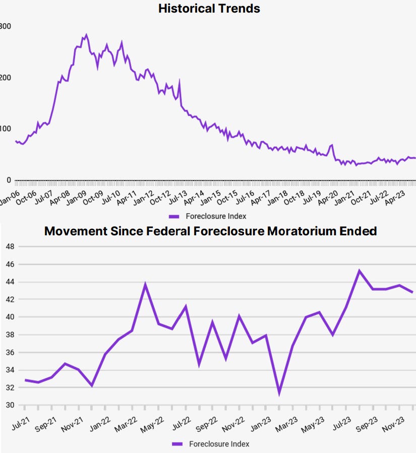 “The Foreclosure sub-index reflects the number of intakes related to foreclosure as a share of total intakes across all areas of law.”