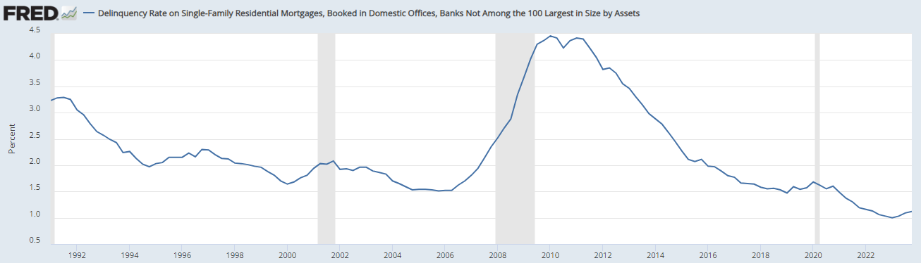 Delinquency Rate on Single-Family Residential Mortgages, Booked in Domestic Offices, Banks Not Among the 100 Largest in Size by Assets