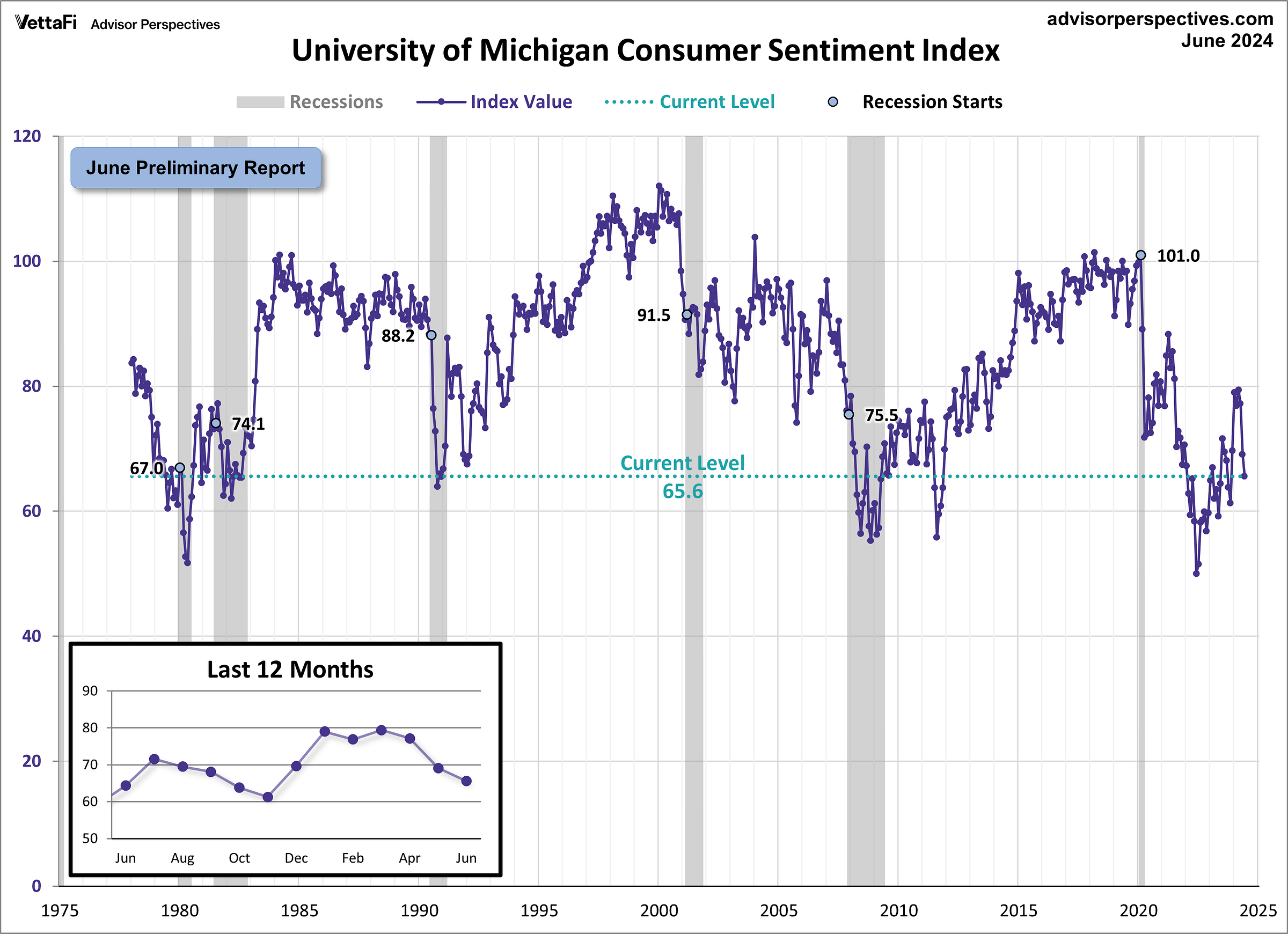 “The current level of 65.6 is below the index's level at the start of 6 of the 6 recessions since the index's inception.”